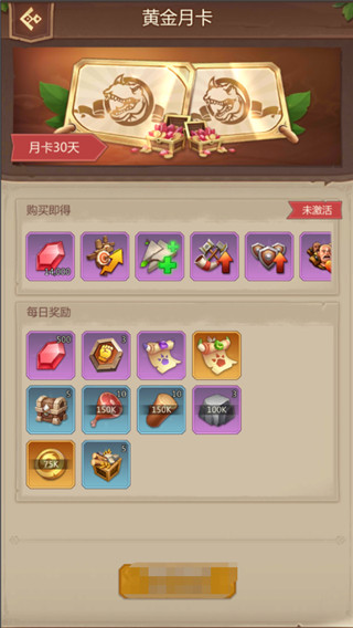 (二)黄金月卡礼包:主要以战斗属性加成为主。