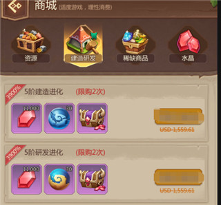 (六)建造研发五星套装进化:减少更多建筑和研发所需要消耗的材料,属性永久有效!
