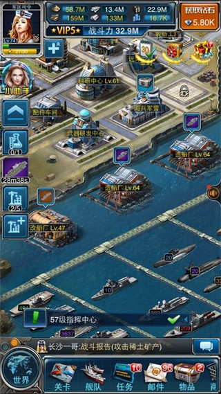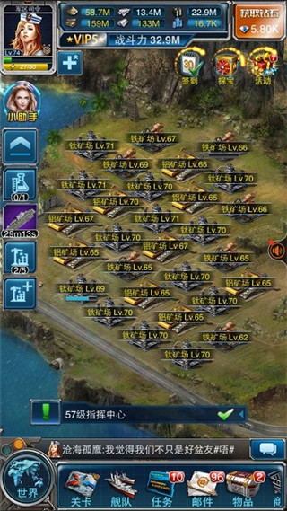 5、广阔的世界地图,产量丰富的资源矿区,收集资源,组建舰队,升级科技,打造自己的蓝海海军