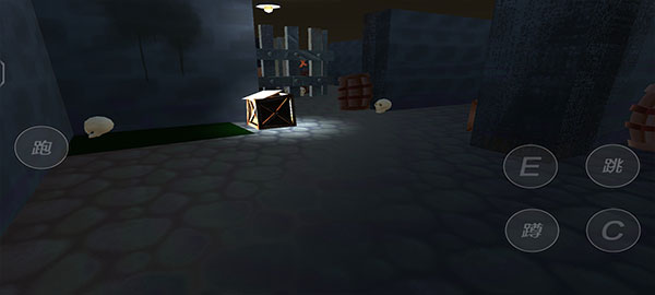 8、右侧有跳和下蹲,E代表拾取,场景很大,可以自由探索,一边小心被邦尼发现,一边寻找邦尼的日记,找到密码开启逃生之门。