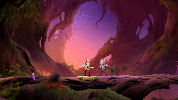 3、第一关打boss时泰斯要变成弹床花,辅助队友为主,让队友跳高打花,因为薇拉打花快,同时也得注意脚下的攻击。boss第二形态的那三次攻击,也需要泰斯变成弹床花,这需要玩家的配合。同时这攻击是打不到泰斯(因为这样单人也才能过),在三次感觉后,boss会进入4秒左右的虚弱状态。boss打败后的浮游草能让薇拉学会翻滚,用来躲避攻击。