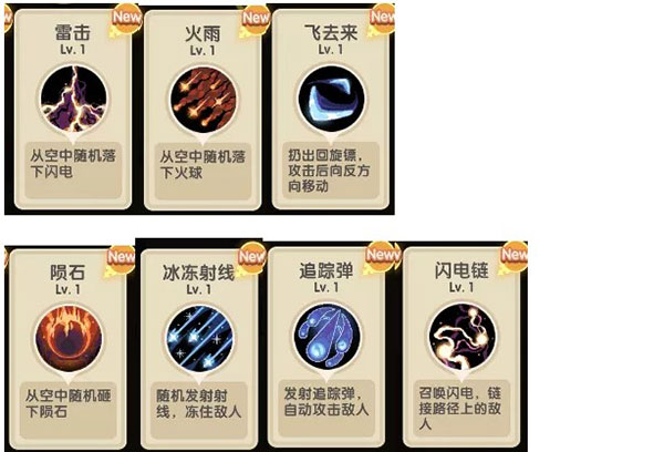 闪电链、追踪弹、冰冻射线、飞去来同类技能,均为自动索敌技能,前期因为范围较大较为好用,在关卡后期伤害略显不足,可根据实际需求选择。其中,冰冻射线附带冰冻控制效果,在某些情况下相对好用。