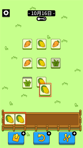 5、游戏左下角的按钮可以帮助玩家从方格中移出三个卡牌;