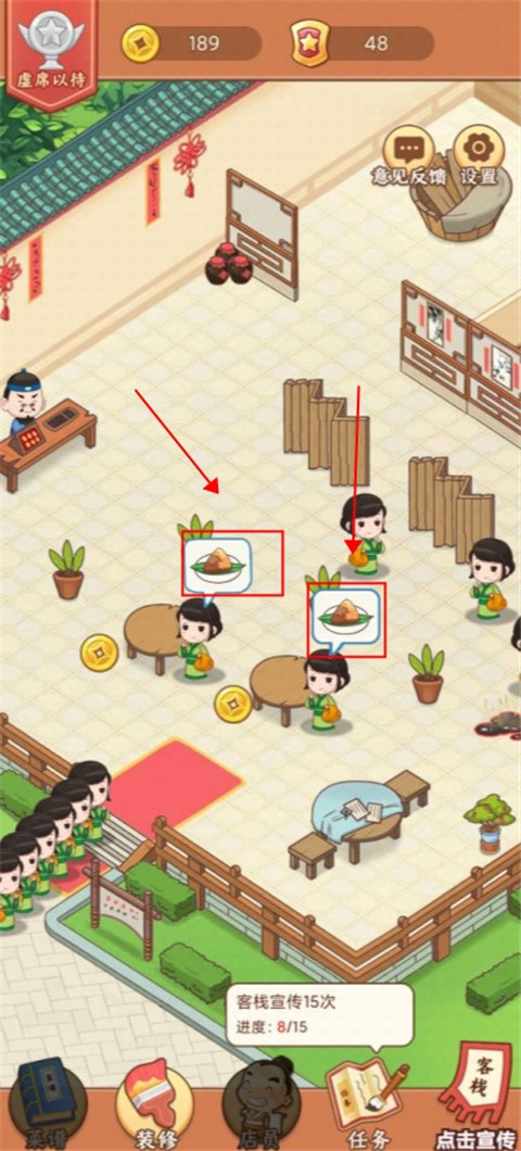 2、放置挂机轻松经营获得超多福利,赚取金币解锁全新装饰,创意组合打造个性客栈