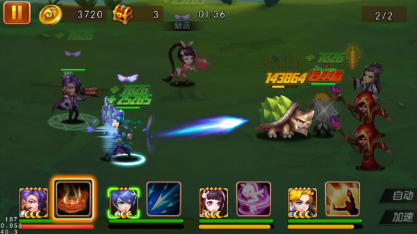 4)集火:点击战场中的怪物,这意味着集火,所有英雄都会攻击那个怪物。
