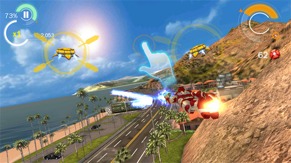 虽然是一款类似跑酷的游戏,但是IOS/安卓钢铁侠3依然加入了攻击方式,在享受风驰电掣般的飞行快感的同时,来一场激烈的战斗相信是不少玩家的最爱。