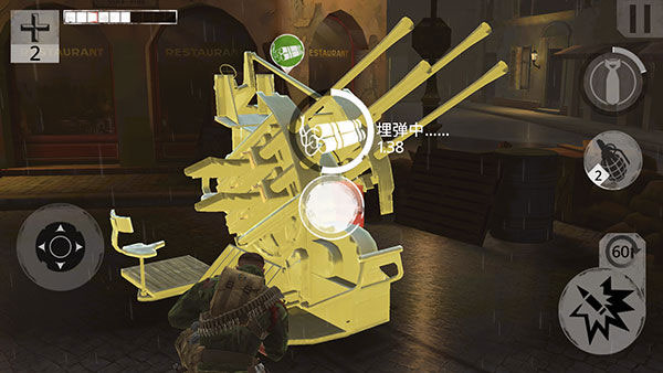 任务特点:每个关卡中共有3个高射炮,它们不能使用空袭技能以及炸弹摧毁,需要安装计时炸弹才能爆破掉,注意离炸弹保持一定距离,否则会造成主角损血。