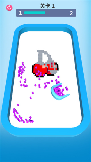 1、在游戏中你需要去收集很地面上的小方块,然后把这些小方块框起来,移动到对应的位置接成一块完整的图案。