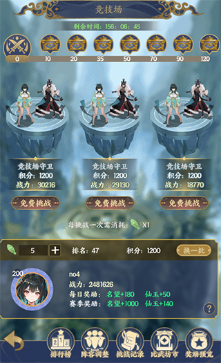 经过上面一波折腾,相信小伙伴们已经收到了一批资源吧。事不宜迟,赶紧给幻神用上啦。然后再次把上述的功能都挑战一番,直到进入瓶颈后,就去挑战竞技场吧,拿个不错的排名,也能获得不错的奖励呀!如果连竞技场也完成了,那恭意你今天的工作就算完成啦!