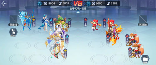 1、我们在进入战斗前,会进行阵型调整,在调增界面的上方可以看到敌我双方的对比数值,有【先】和【后】两个字,就代表的是哪一方先出手,另外一方后出手。