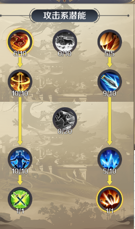 那么这2个系的潜能加点思路都很简单——哪个养成系统养成深度高,加成属性高就点出对应的属性加成潜能,目标是尽早点出最后的强力潜能