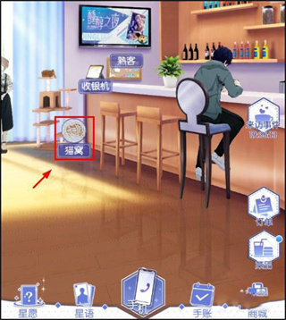 1、在梦间集天鹅座手游的咖啡厅,点击位置,如图所示;