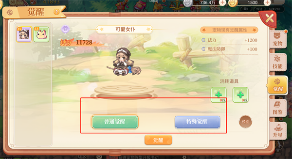 宠物觉醒分为普通觉醒和特殊觉醒。