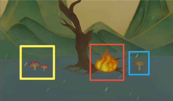 1、切换到右边场景,拿到右边单颗肉色的蘑菇。
