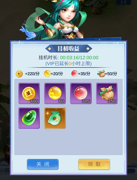 6、游戏内还有挂机收益可以领取,通过的关卡越多,收益越丰富。