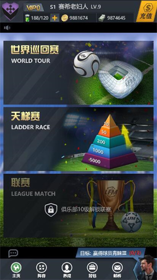3、在超级联赛玩法里,玩家们初始时会体验到世界巡回赛。完成这些比赛,可获得诸多高等级球星,以及物品。后续还会开启天梯赛,联赛等玩法。