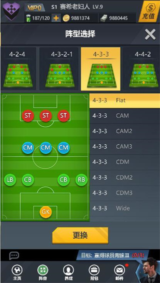 另外,玩家可以根据自己现有的球员进行阵容的调整,比如自己实力强的前锋较多时,可以选择4-4-2或者4-3-3阵容,发挥出自己球队最大的实力。