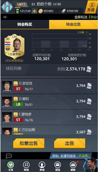 该列表会展示你的预备队的所有球员信息,在这可以出售所有你不想要的球员,获得合同币。