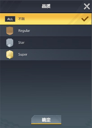 该列表会显示球员的3个品质,选中想选择的品质点击确定按钮即可。继续点击搜索即可查看所有该品质的球员信息。