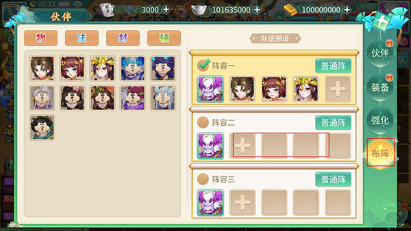 2、接着点在布阵界面,点击阵容内的加号即可添加角色进行布阵。
