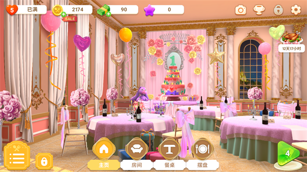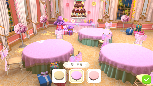 5、点击房间即可对当前房间进行各种装扮,包括蛋糕以及各种设施的摆放与选择。