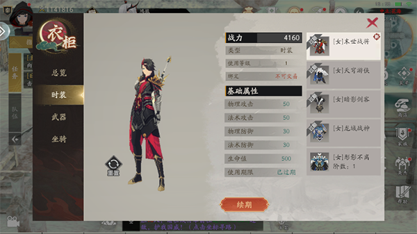 3、非永久时装到期后属性加成失效且不可“穿戴”,续期有效时长可重新激活。