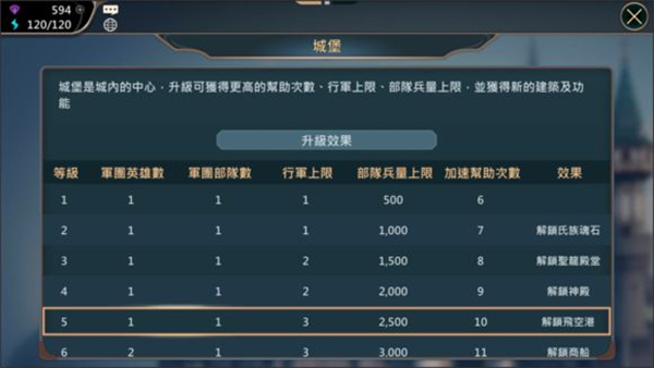 每个建筑都拥有各自的功能性,必须达到限定要求后才可升级建筑,升级建筑亦可解锁领主能力上限。完成关键建筑的升级还会触发游戏剧情!