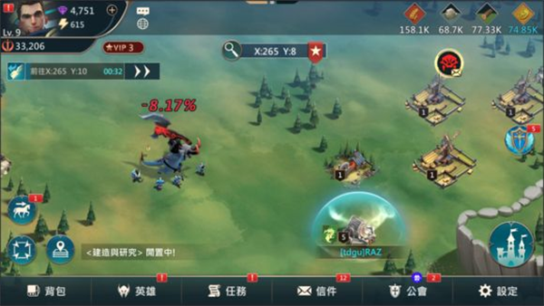 您的生存资本除了靠战争赢得,您还可以派遣您的军队出去采集资源,攻打魔物。