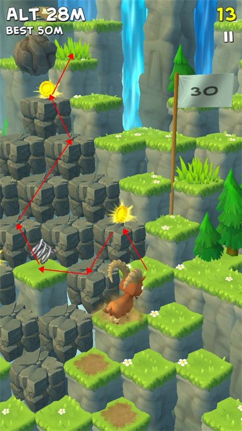 作为一款纵向跑酷类的休闲游戏,石山羊Mountain Goat Mountain的游戏目标就是不断获得高分,那么想要获取高分需要哪些技巧呢,赶紧来了解一下吧。