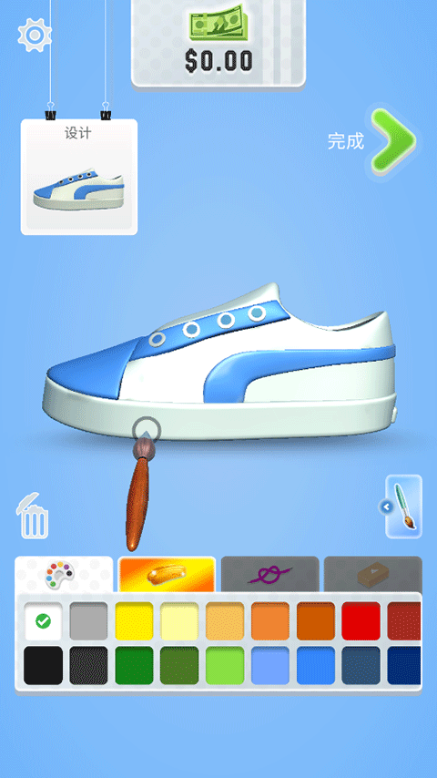 1、成为职业运动鞋艺术家!拿起画笔,在游戏中设计DIY定制运动鞋。