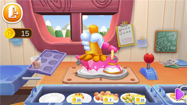 2、在游戏过程中能够使用不同的道具,让糖果的制作速度变快,可以快速的去售卖糖果。
