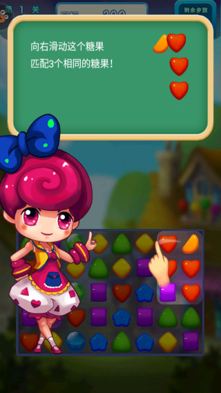 ①用手指滑动1个糖果,匹配3个相同颜色糖果来获得分数!