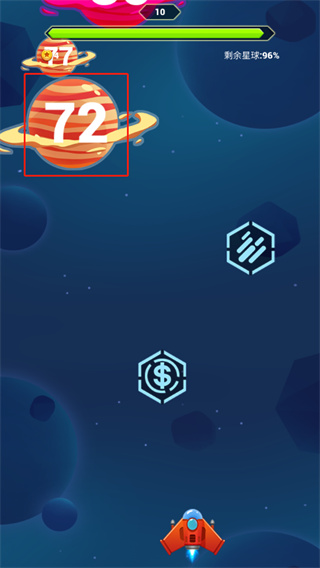 消灭星球游戏操作简单,玩家只需要点击屏幕即可开始游戏,游戏中玩家需要通过上下左右滑动屏幕来进行移动,击败星球还会获得一些道具来帮助玩家进行闯关,大的星球击败后还会分裂成小的星球,将所有的星球击败后即可通关,通关后玩家点击领取来获得奖励。