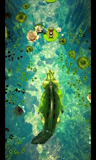 2、控制小青蛙跳跃到前方的荷叶上来躲避鳄鱼的攻击。