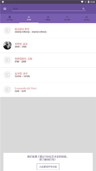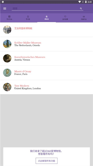 2、阅览780多名画家的传记以及500多家博物馆的藏品信息;
