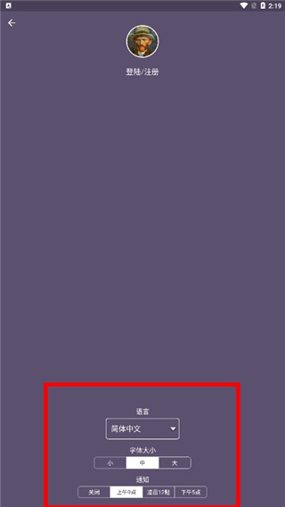 5、如果一开始进来忘记选语言的话,在这里也可以选择,还可以设置字体大小,以及通知时间