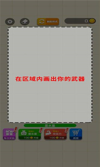 1、玩家进入游戏之后就可以点击开始游戏,在自己想要的区域画出想要的武器;