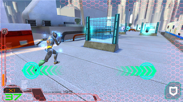 使用跑酷式跳跃躲避障碍物、地雷和离子塔楼。