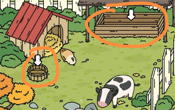 等家畜吃完饲料后,点击它们头上出现的小爱心就可以收获蛋奶了。