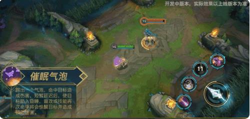 发射一个气泡,对命中的首个目标造成魔法伤害,短暂延迟后使敌人陷入睡眠状态,期间对目标敌人的首次伤害可造成额外真实伤害并使目标醒来。