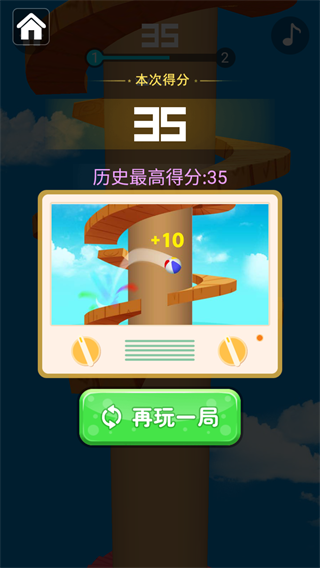 球球跳跳塔官方版,玩家在游戏中需要通过点击屏幕来控制球球的跳跃,永远不要停止向上的步伐,游戏整体采用了生动的视觉效果,有着令人上瘾的跳跃感,对玩家来说不仅仅可以锻炼肢体,眼睛和大脑的协调,同时还可以享受巨大的游戏乐趣,游戏的整体玩法很简单,一个没有终点的旋转楼梯,你需要做的就是通过跳跃避开游戏中的任何阻碍,遇到尖锐的突起以及没有楼梯空白处记得一跃而过,向上途中还有绿色的小心机块哦,如果躲避不及就只能重新开始游戏了。