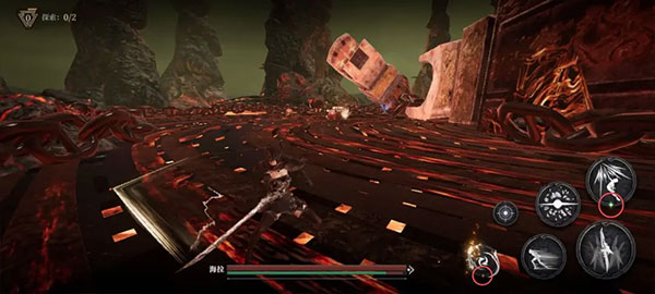 1-3关卡中会出现红手状物体,交互后会召唤人形敌人进行攻击,这里就可以利用新获得的羁绊技能召唤巨剑兵协助作战。1-4中会解锁奥义技能,战斗中角色生命和耐力条下方会出现奥义槽,角色在攻击到敌人或者受到攻击时会积累奥义值,积满后便可使用,造成大额伤害并削减敌人韧性。通关升级后角色的轻重武器技能链技能数量各达到了三个,可以将相应技能配置到新解锁的技能槽中丰富技能链。