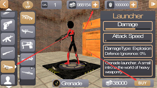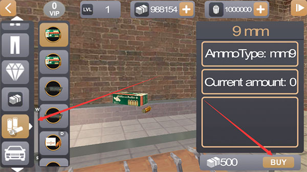 3、进入商城后可以看见已经内购的货币数量,选取自己喜欢的枪支,点击BUY进行购买。