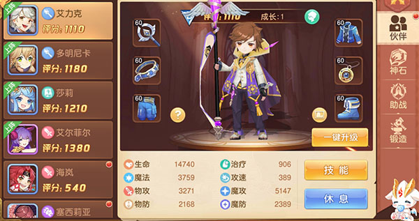 主要追求属性:治疗强度、生命值、物防魔防、速度