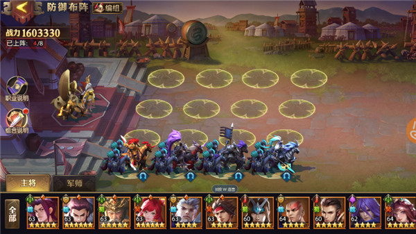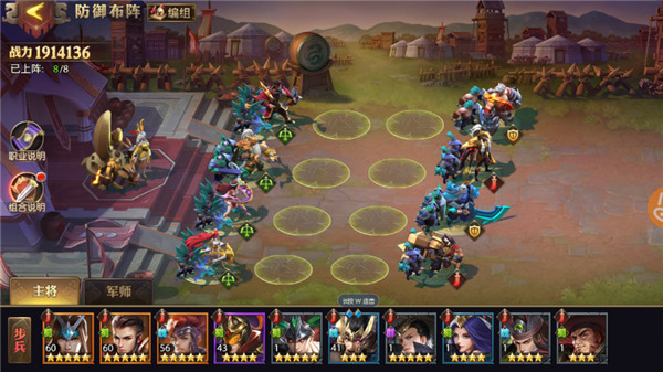 3、布阵指南:布阵时盾兵武将放在阵容最前排,尤其是对面拥有轻重骑兵时请针对摆放以保证己方后排输出环境。