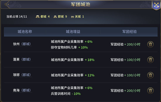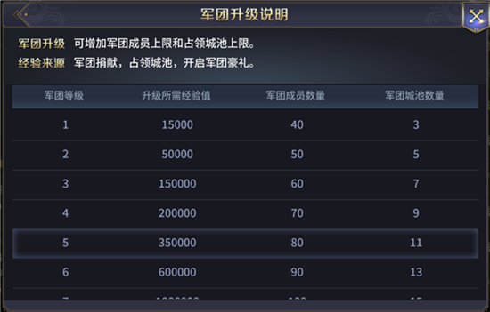 但是值得注意的是,不同的军团等级拥有不同的城池占领上限。军团等级的提升只能通过成员的捐献和占领城池的经验收益。