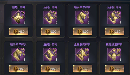 1貂蝉碎片=300竞技币(2折)=300黄金(1500)