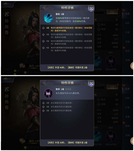 30级激活致命1:永久增加10%弓兵暴击率。