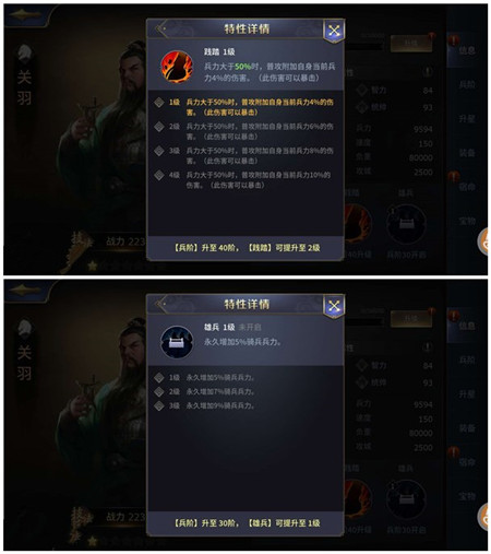 40级践踏2:兵力大于50%时.普攻附加自身当前兵力6%的伤害(此伤害可以暴击)