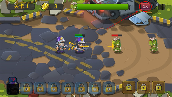 僵尸行动队2游戏全称为死亡前线:僵尸行动队2,这是一款以僵尸为题材的塔防类策略手游,并且由于它是《僵尸行动队》的正统续作,因此本作不仅延续了前作优秀的2D横版模式与精美的卡通风格,而且它还创新了更加丰富的士兵兵种与关卡!